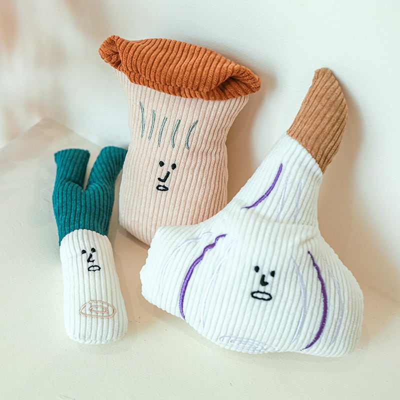 なんともいえない表情が可愛い野菜がモチーフのおもちゃです。顔を押すとピーピー音が鳴ります。ふわふわで手触りの良い生地を使用。
